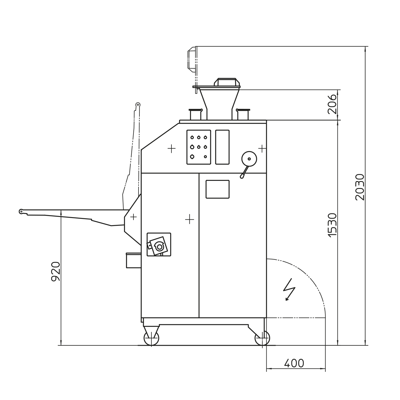 Stroj se može uključiti u mini liniju za konačno oblikovanje pekarskih peciva, koja može uključivati međukomoru za fermentaciju i jedinice za oblikovanje izduženih peciva i kajzera.